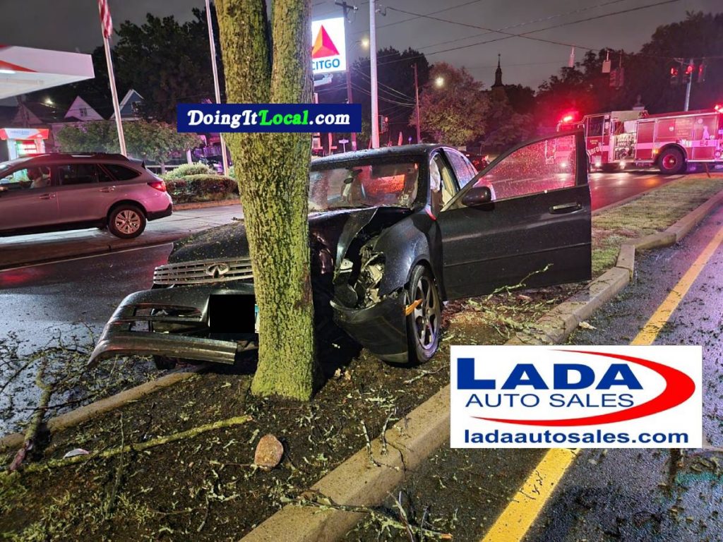 2021-07:02@10:13pm–#Bridgeport CT–A distracted mom took her eyes off the road for a second and crashed her car into a tree on North Avenue near Dewey Street. The children in the back of the car were fine, and the father came and took them home. The mother was in a great deal of pain and was transported to the hospital by EMS.