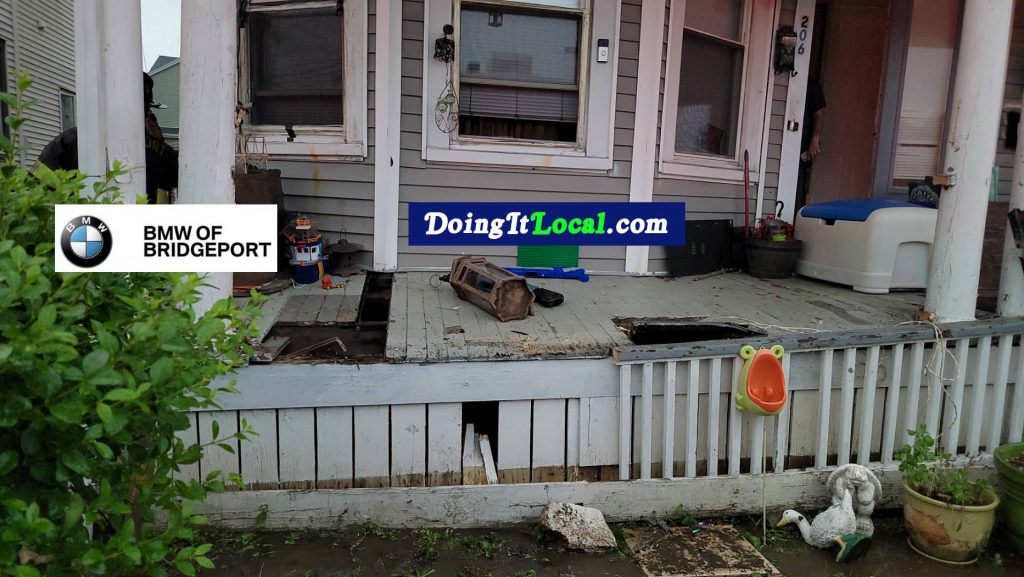 2021-07-02@7:30pm–#Bridgeport CT– Firefighters rescued two woman from a first floor porch collapse on the first floor. Both women appeared to have leg injuries and EMS transported them to the hospital.