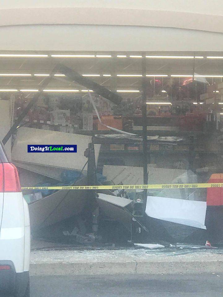 2021-07-22@9:45AM– #Stratford CT– A viewer sent in this photo when a car crashed into the Family Dollar at 60 Access Road this morning. The store was closed afterwards.