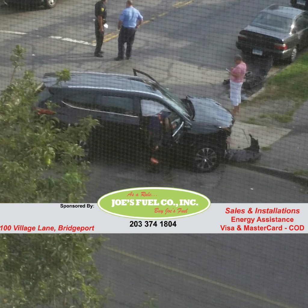2021-08-17@5:42pm–#Bridgeport CT– A viewer sent in this photo of a crash a Iranistan and Benham Avenue. A number of witness told me the driver of the other vehicle attempted to flee the scene and was chased down and assaulted after he was caught around the block on Brothwell Street. 3 people were sent to the hospital.
