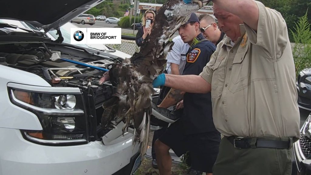 2021-08-04@2:05pm–#Fairfield CT– Fairfield firefighters helped rescue a turkey vulture that flew into a grill of a vehicle while on the highway. The driver discovered the trapped bird parked on South Benson Road. The firefighters disassembled the front of the vehicle and removed the bird alive. Animal Control Officer Paul Miler said it was a turkey vulture. Miller said the bird’s injuries were too sever and the bird had to be euthanized.