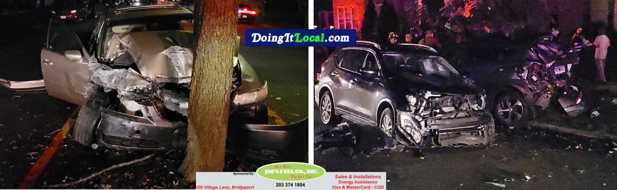Bridgeport Police released statement: At 1919hrs the Bridgeport ECC received multiple 911 calls regarding a multi-vehicle accident on North Avenue. Preliminary reports indicated a party hit multiple cars with one car crashing into a tree. BPD responded to the scene and confirmed a multiple MVA with a report of one of the vehicles just being reported stolen from a gas station moments before the accident. On-scene preliminary reports are indicating one party may have been under the influence. Extent of injuries appear to be non-life threatening at this time but do involve multiple parties with AMR treating the injured. This is still an active investigation as BPD is still deciphering witness accounts and those involved statements.