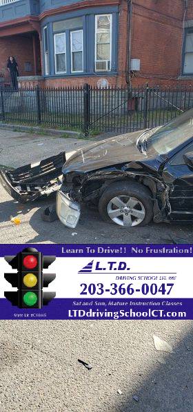 2021-11-04@4:24pm–#Bridgeport CT– A viewer sent in this photo of a hit and run accident on Harriet Street near East Washington Avenue. The striking vehicle might be stolen.