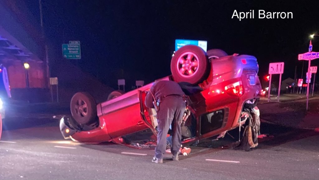 2021-11-24@9:42pm–#Bridgeport CT– A one car rollover accident at Seaview and Stratford Avenue.