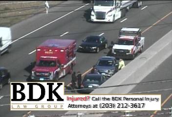 2021-11-18@11:28pm–#Milford CT– #cttraffic– A multi-car crash on I-95 southbound near exit 36. All cars are in the left lane and left breakdown lane.