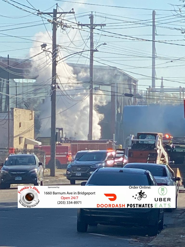 2022-01-27@2:22pm–#Bridgeport CT– Firefighters extinguished a fire on Cross Street. The viewer who sent in this photo said it was a machine fire that extended to the nearby brush. Firefighters quickly extinguished it.