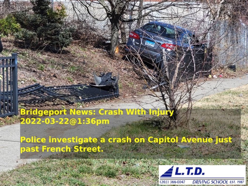 2022-03-22@1:36pm #Bridgeport CT– Police investigate a crash on Capitol Avenue just past French Street.