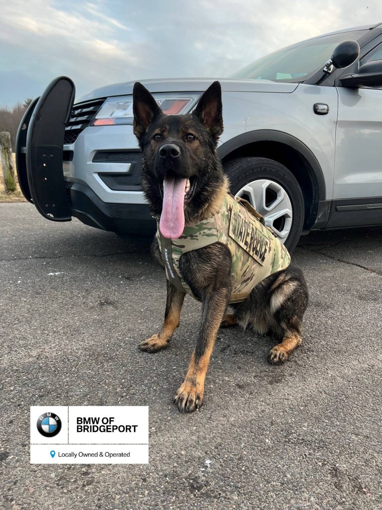 Connecticut State Police K-9 Nash has received a bullet and stab protective vest thanks to a charitable donation from non-profit organization Vested Interest in K9s, Inc. K-9 Nash’s vest was embroidered with the sentiment “In honor of Kim Carino.”