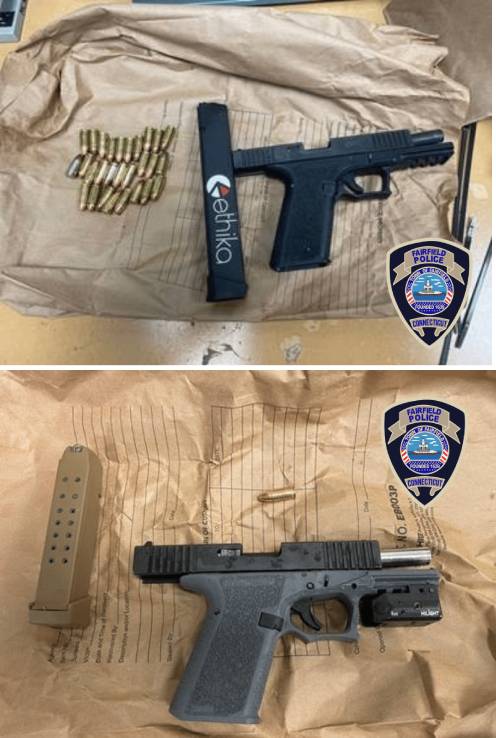 Chief Robert Kalamaras reports that the Fairfield Police Department arrested two teenagers on several charges and seized two “ghost guns” following a lengthy pursuit of an alleged stolen motor vehicle last night.