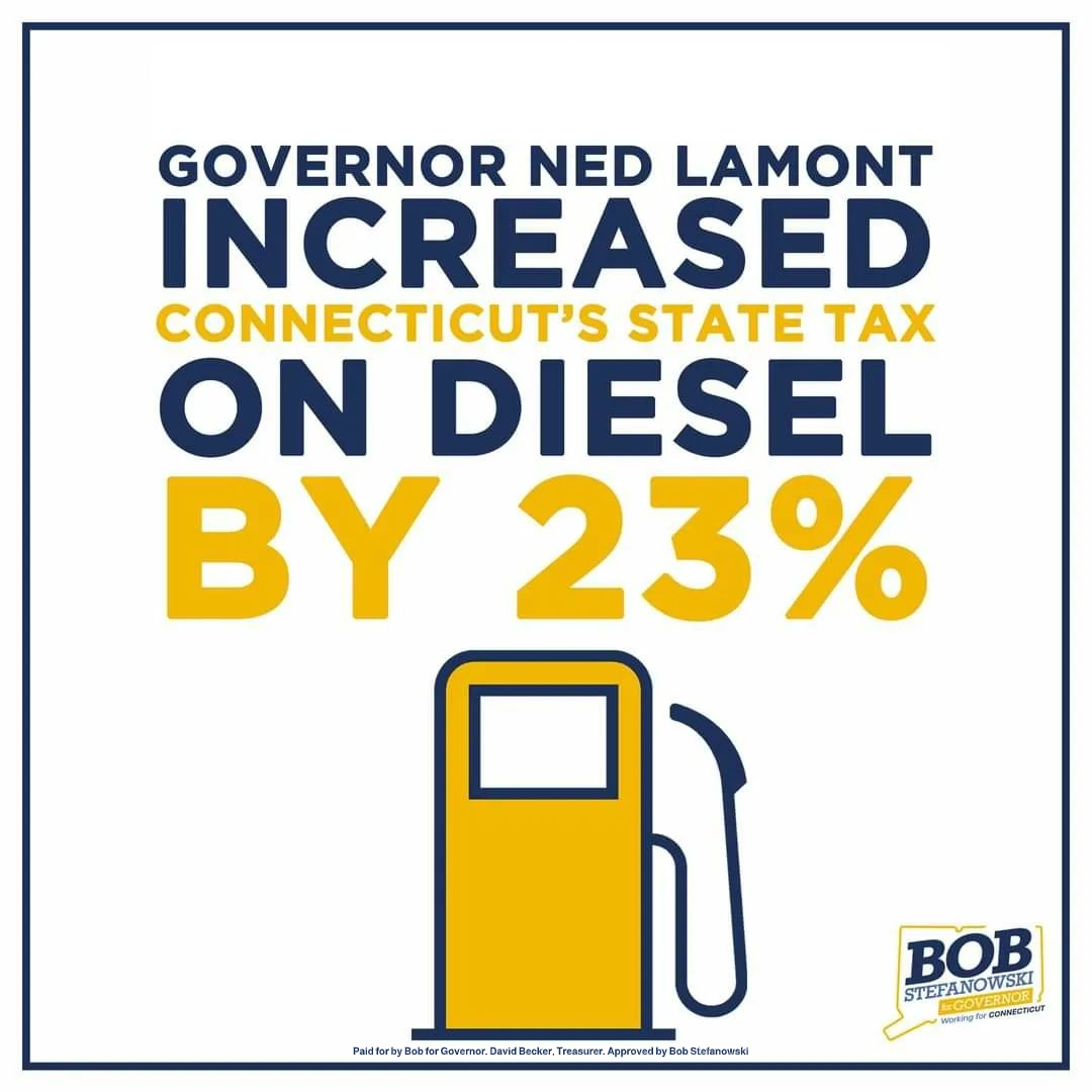 “Inflation is already costing Connecticut families over $650 each month. Governor Lamont had a chance to do something to stop it but he didn’t,” said Stefanowski. “This Biden/Lamont inflation crisis is costing you 40% more. Ned Lamont is leaving Connecticut with crumbs. Today, he’s jacking up your taxes, and raising costs on everything, by increasing the diesel tax by 23%. It’s now nearly 50 cents per gallon!”