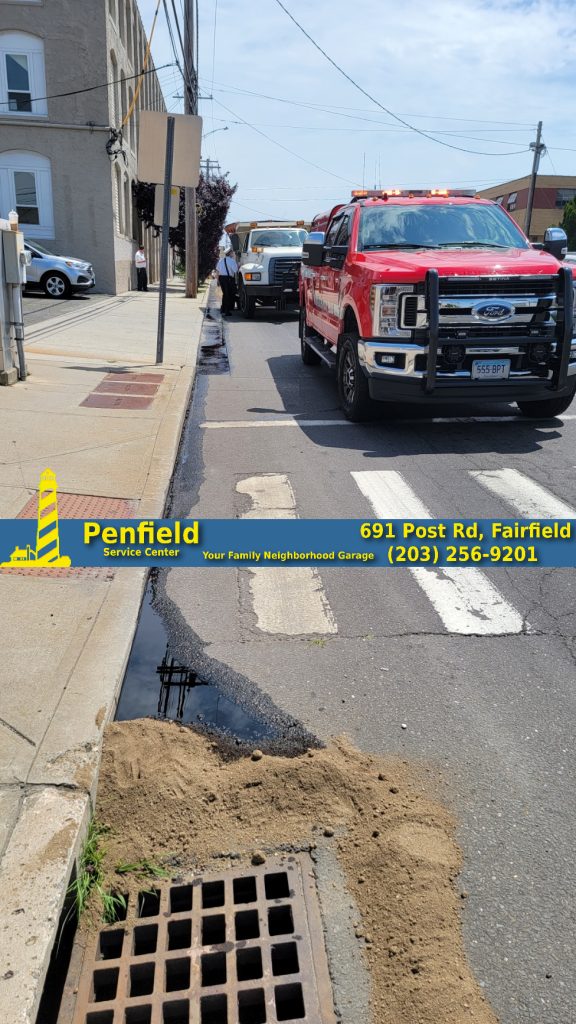 2022-07-05@11:44am–#Bridgeport CT– Firefighters were called for an oil spill on Commerce Drive. Witnesses said a pick-up truck was carting a barrel with oil when it turned onto Commerce Drive from Fairfield Avenue when the barrel tipped over. The driver righted the barrel but left the spill behind. The Connecticut Department of Energy and Environmental Protection was notified of the oil that flowed into the storm drain.