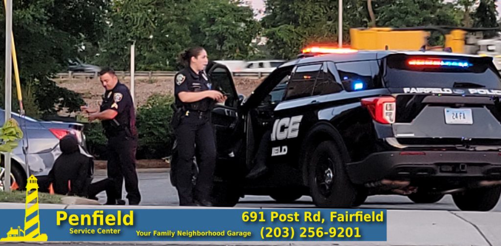 2022-07-09@8:11pm–#Fairfield CT– Police have one of two alleged car thieves in custody on Kings Highway East near Johnson Drive.