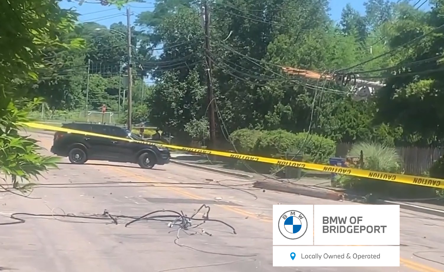 2022-07-04@11:41am–#Fairfield CT– A downed utility pole has traffic shutdown on