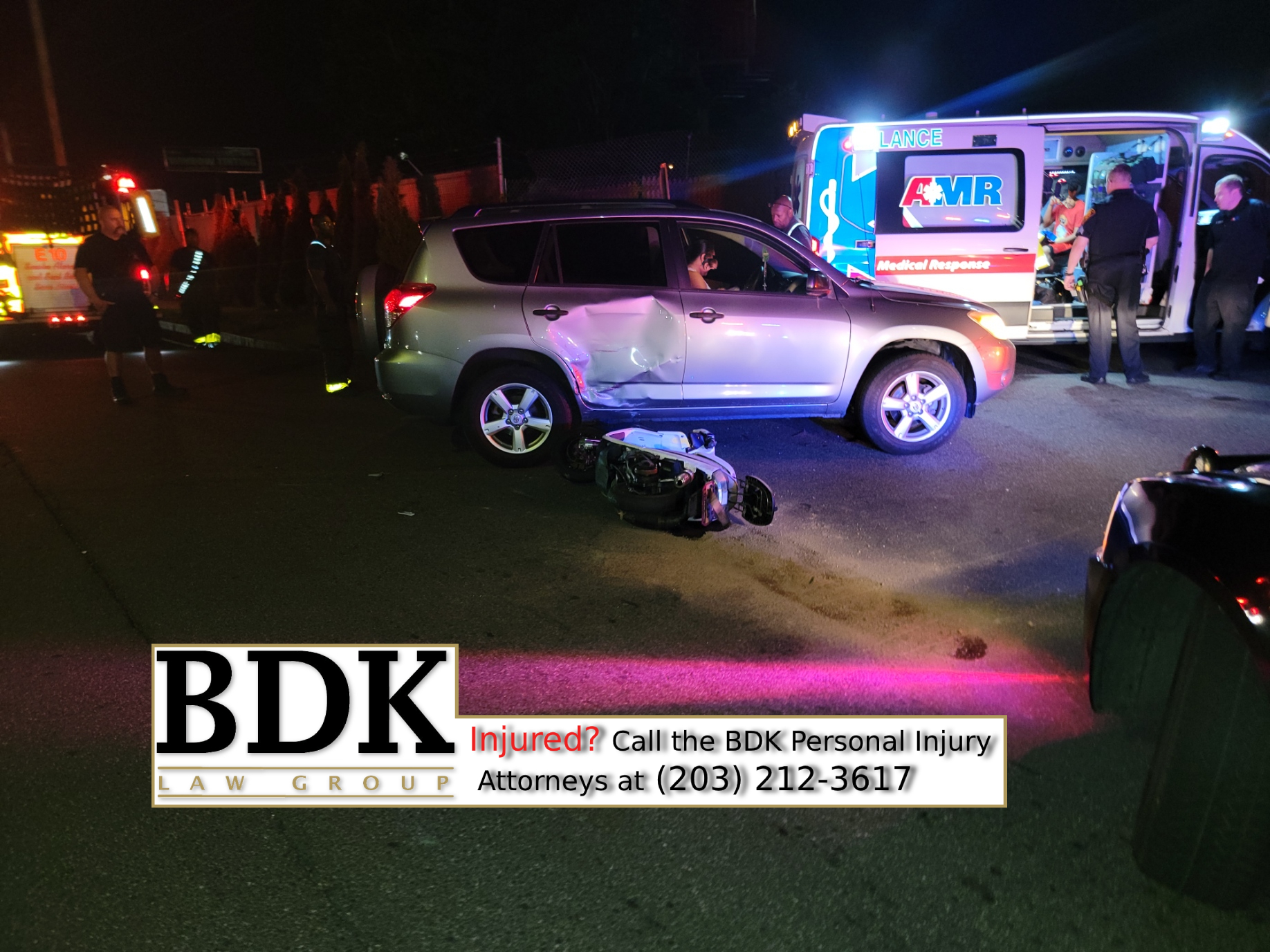 2022-08-16@9:36pm–#Bridgeport CT– The driver of the moped was injured and transported to the hospital in a collision with an SUV at North and Colonial Avenue.