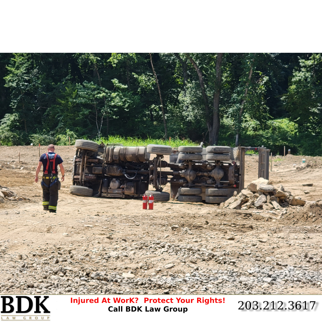 2022-08-04@1:31pm–#Fairfield CT– A construction worker was injured when the truck he was operating rolled over on Hillside Road near Cobblers Hill Road.