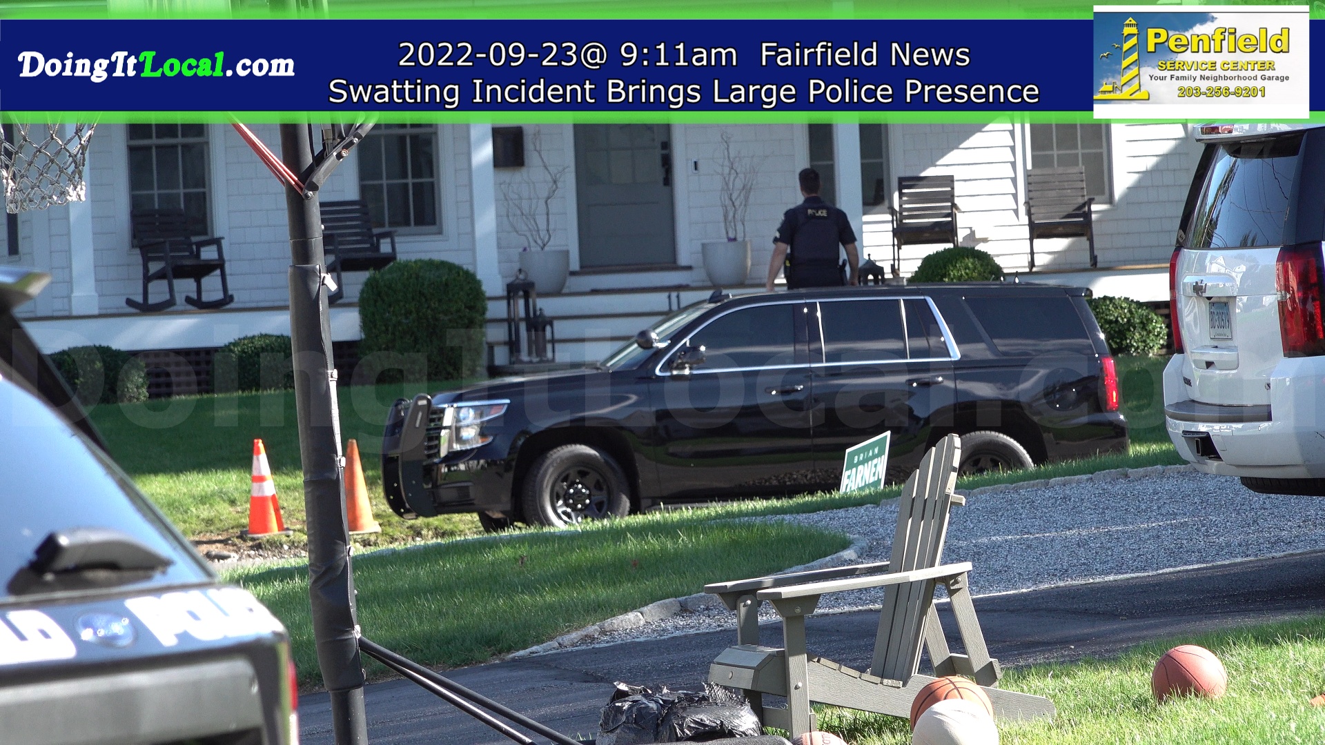 2022-09-23@9:11am–#Fairfield CT– Fairfield Police were called to Colonial Drive for the report of a double homicide which turned out to be a swatting incident. Swatting is defined as “the action or practice of making a prank call to emergency services in an attempt to bring about the dispatch of a large number of armed police officers to a particular address.” Nearby Sherman School was not placed in locked down because police were certain the incident was not near the school.