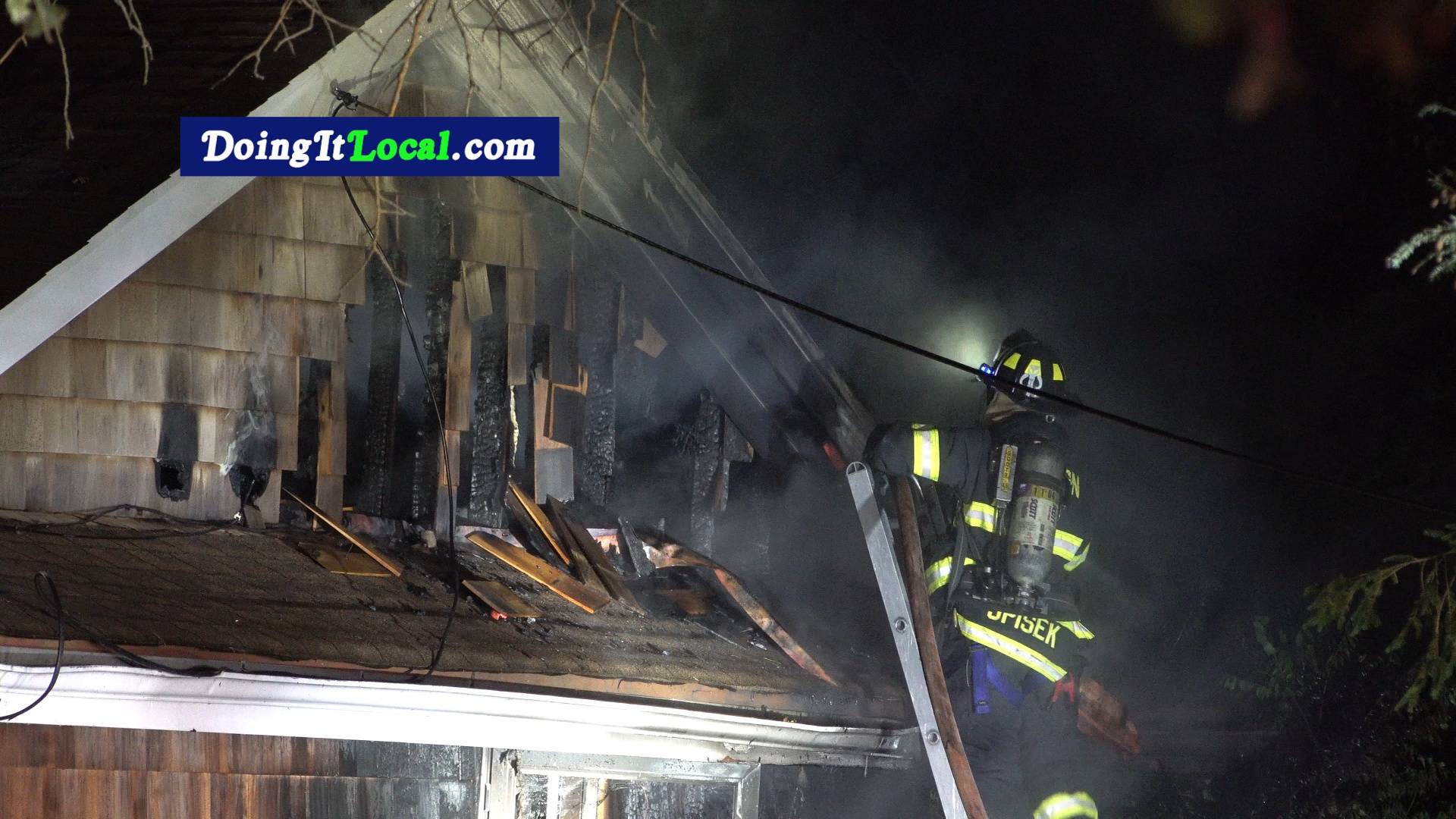 2022-10-10@12:10am–#Easton CT– #ctfire–Firefighters were called to a house fire on Northwood Drive. When they arrived they found fire on the right side of the home on fire. The homeowner told me it was the porch and that everyone made it out safely. They also said they were thankful for the smoke alarms which alerted them to the fire. The area town provided mutual aid to combat the fire.