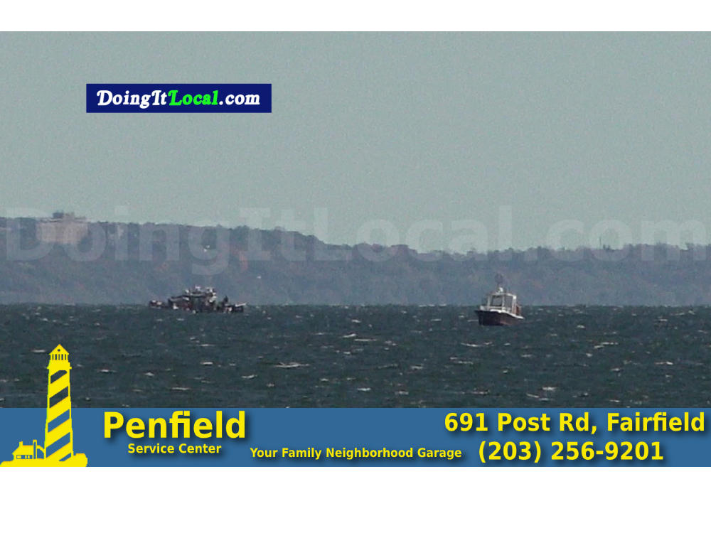 2022-10-27@2:02pm–#Fairfield CT– Police and firefighters rescued a boat taking on water about a mile offshore near the Penfield Lighthouse. There were four people onboard and they all were wearing life preservers. Radio reports said there were no injuries and the police boat towed the boat back to shore.