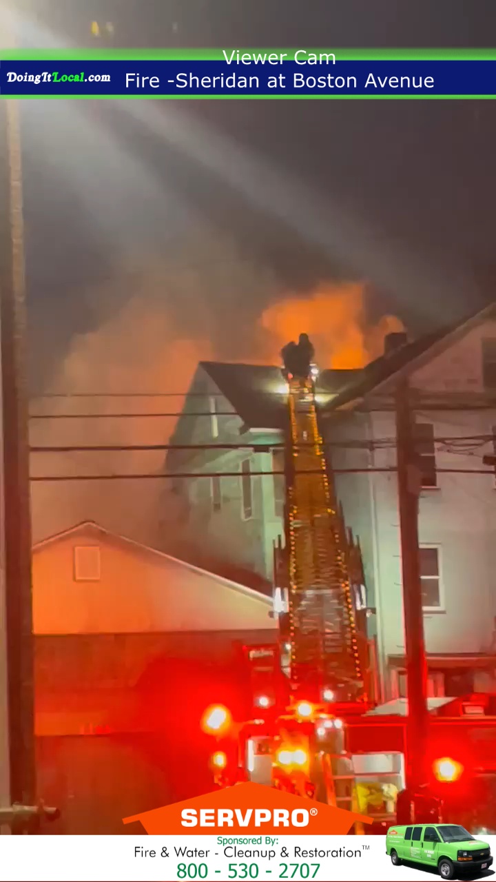 2022-12-01@4:39pm–#Bridgeport CT– #ctfire– Firefighters battled a two-alarm fire at Sheridan and Boston Avenue. Special thanks to all the viewers who sent in photos and videos while I was at Chief Porter’s swearing-in ceremony. Some of our best reports come from viewer videos because you are often first on the scene! I will share more info on this fire when the details become available.