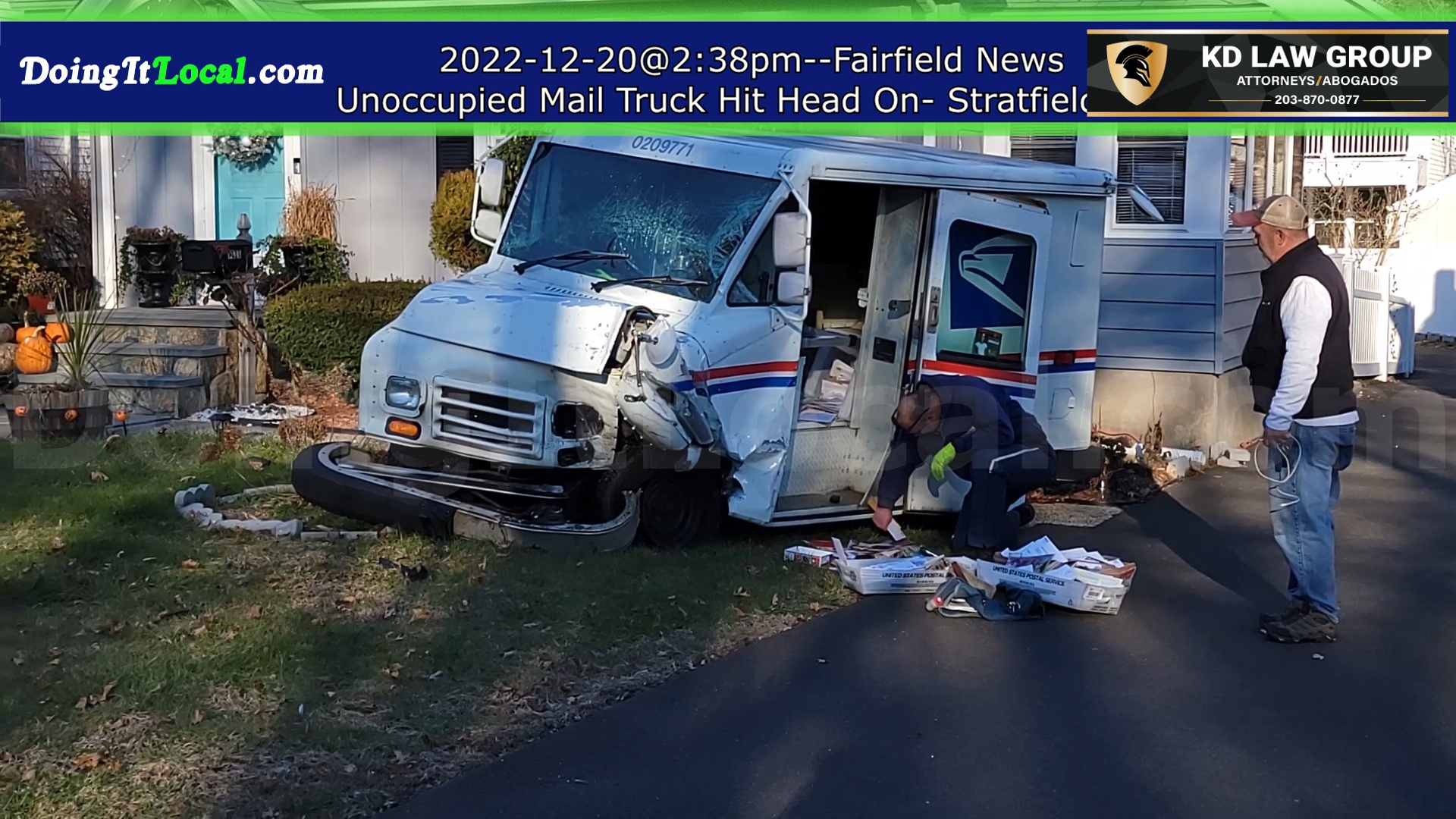 2022-12-20@2:38pm–#Fairfield CT– A parked, unoccupied mail truck was hit head-on by an SUV in the 1600 block of Stratfield Road. There were no reported injuries.