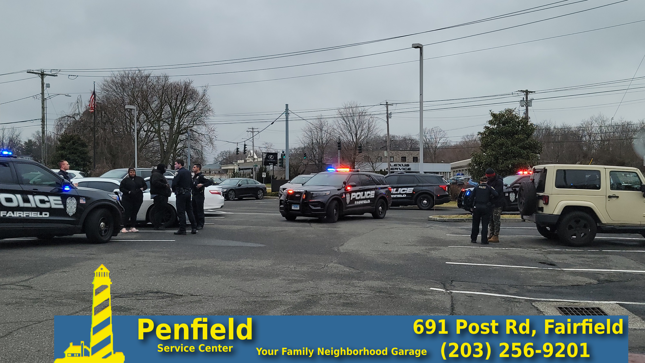 2023-01-05@1:55pm–#Fairfield CT A dispute between employees at Staples and customers lead to a large police presence at the plaza on Kings Highway.