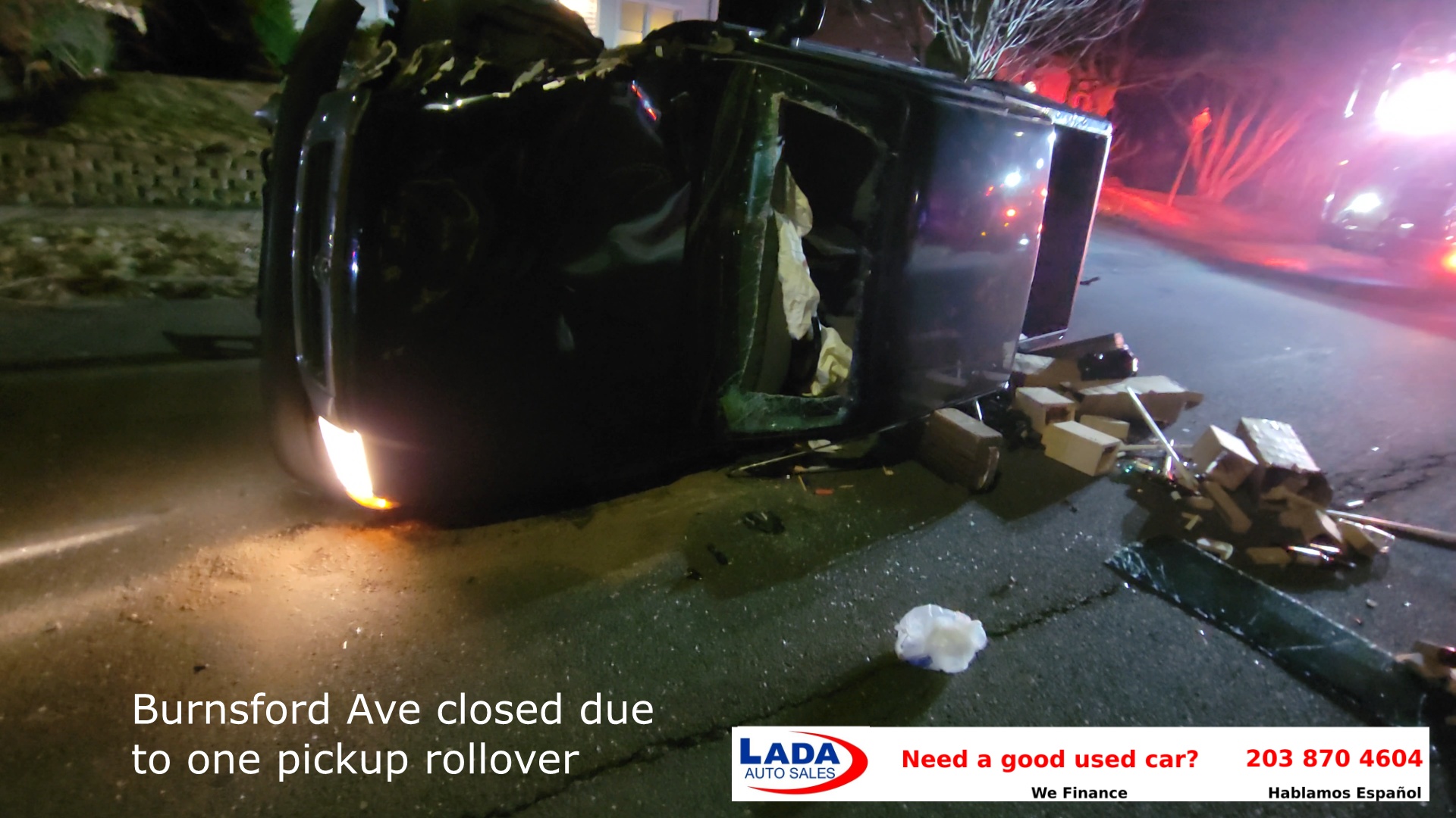2023-03-07@8:15pm–#Bridgeport CT– One person was injured and transported to the hospital after firefighters extricated him from the pickup truck. It appears the truck hit a tree and rolled the pickup onto its side.