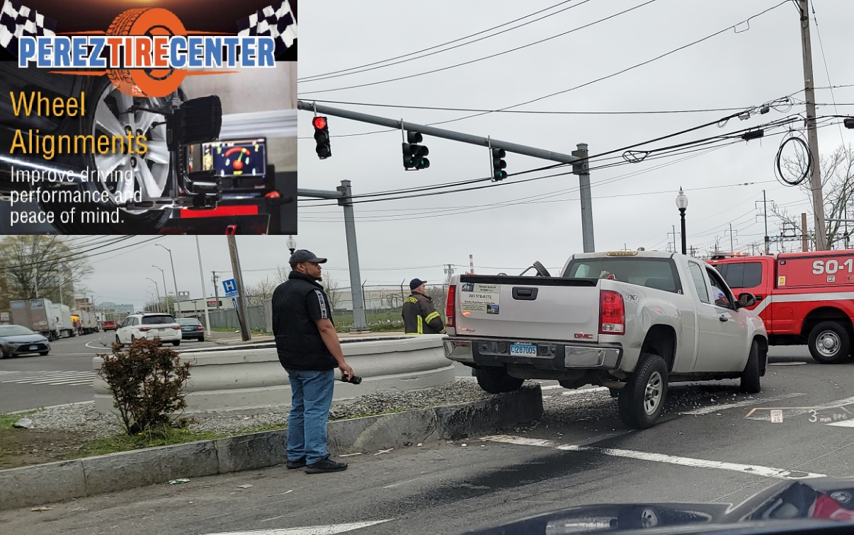2023-04-16@2:15pm–#Bridgeport CT– A truck has ridden up on the curb near at the Whitehead fountain at Commerce and Fairfield Avenue.