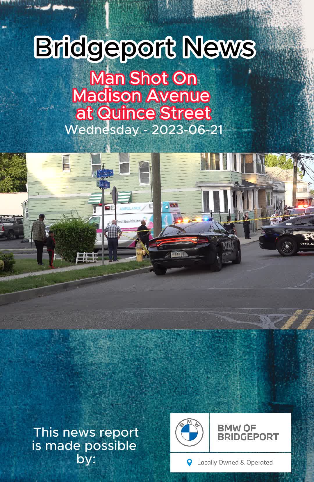 2023-06-21@7:37pm–#Bridgeport CT– Bridgeport Police confirmed our witness of a man being pistol whipped and shot in the thigh at Madison Avenue near Quince Street. Police did get the shooter into custody and recovered the gun. The suspect was transported to the hospital with unknown injuries.