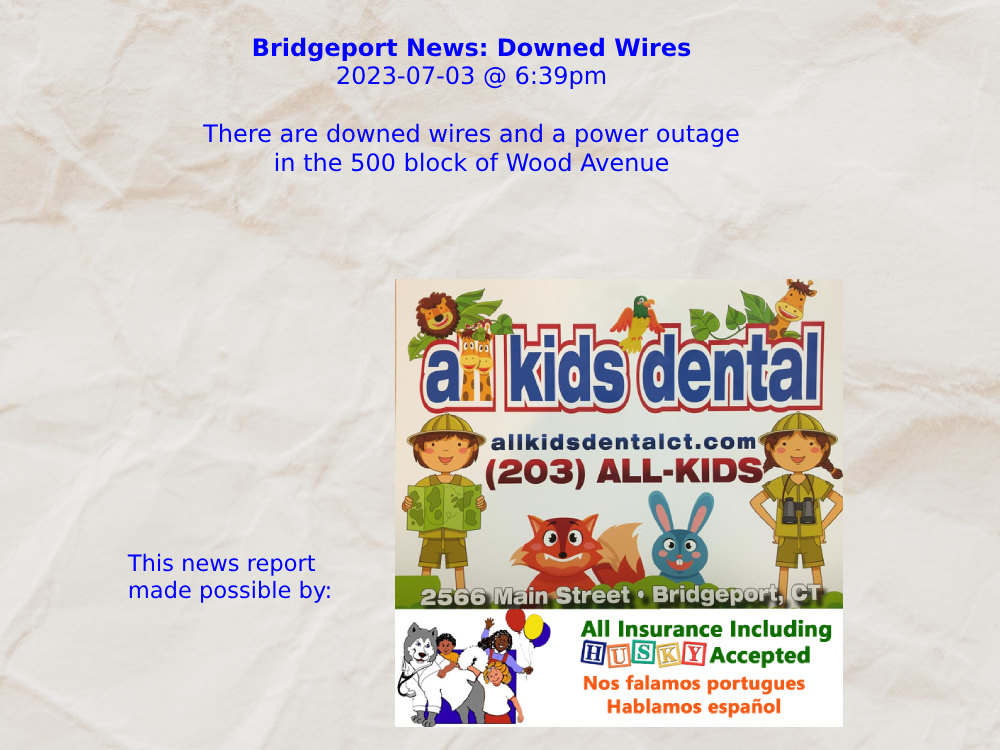 2023-07-03 @ 6:39pm #Bridgeport CT–There are downed wires and a power outage