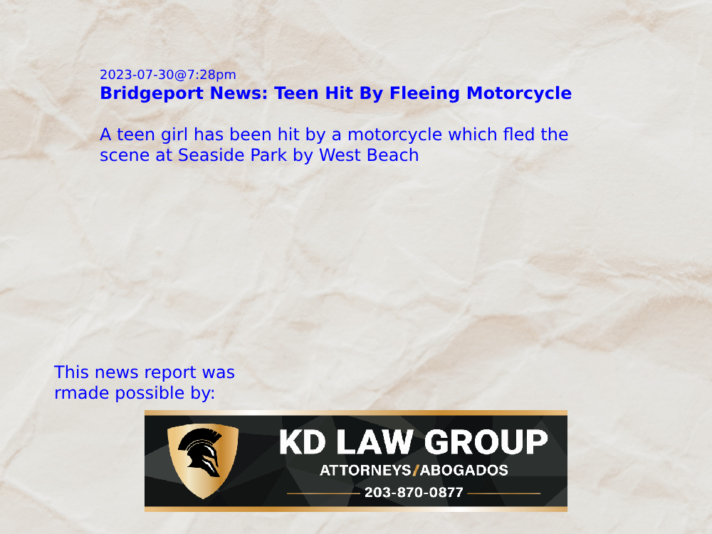 2023-07-30@7:28pm–#Bridgeport CT–A teen girl has been hit by a motorcycle which fled the