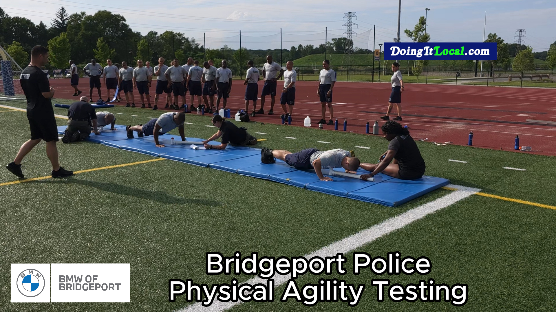 #Bridgeport CT– Bridgeport Police Training Academy held their physical agility test at Harding High School and invited potential candidates to watch and have any questions they might have answered. Over 60 showed up and looked to advance their careers with Bridgeport Police Department. Applications for the position of Bridgeport Police Training Recruit are only available after the announcement of the scheduled written examination. Interested candidates can go to PoliceApp.com and apply here- https://www.policeapp.com/Entry-Level-Bridgeport-CT-Police-Officer-Jobs/4643/