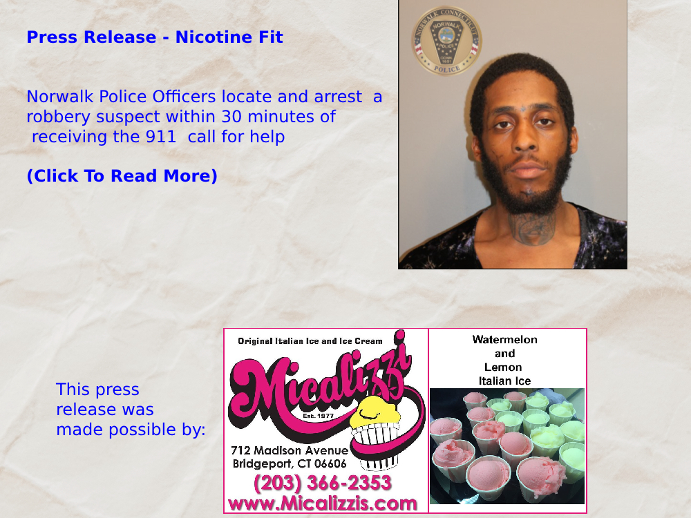 Norwalk Police Officers locate and arrest a robbery suspect within 30 minutes of receiving the 911 call for help.