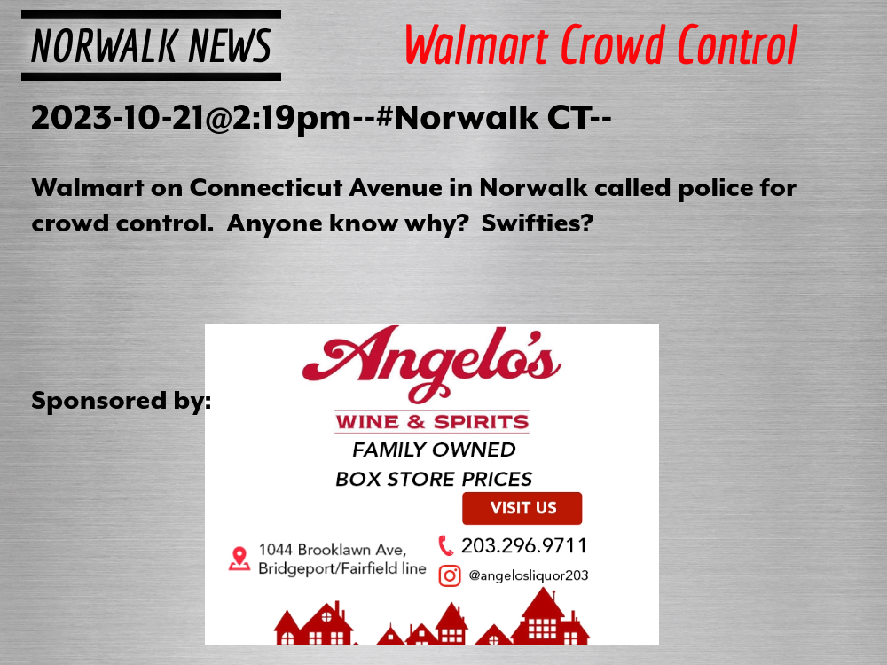 2023-10-21@2:19pm–#Norwalk CT– Walmart on Connecticut Avenue in Norwalk called police for crowd control. Anyone know why? Swifties?