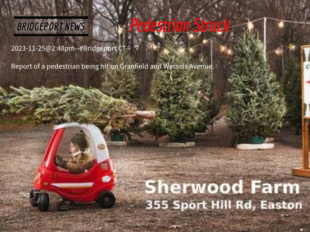 2023-11-25@2:48pm--#Bridgeport CT-- Report of a pedestrian being hit on Granfield and Wessels Avenue.