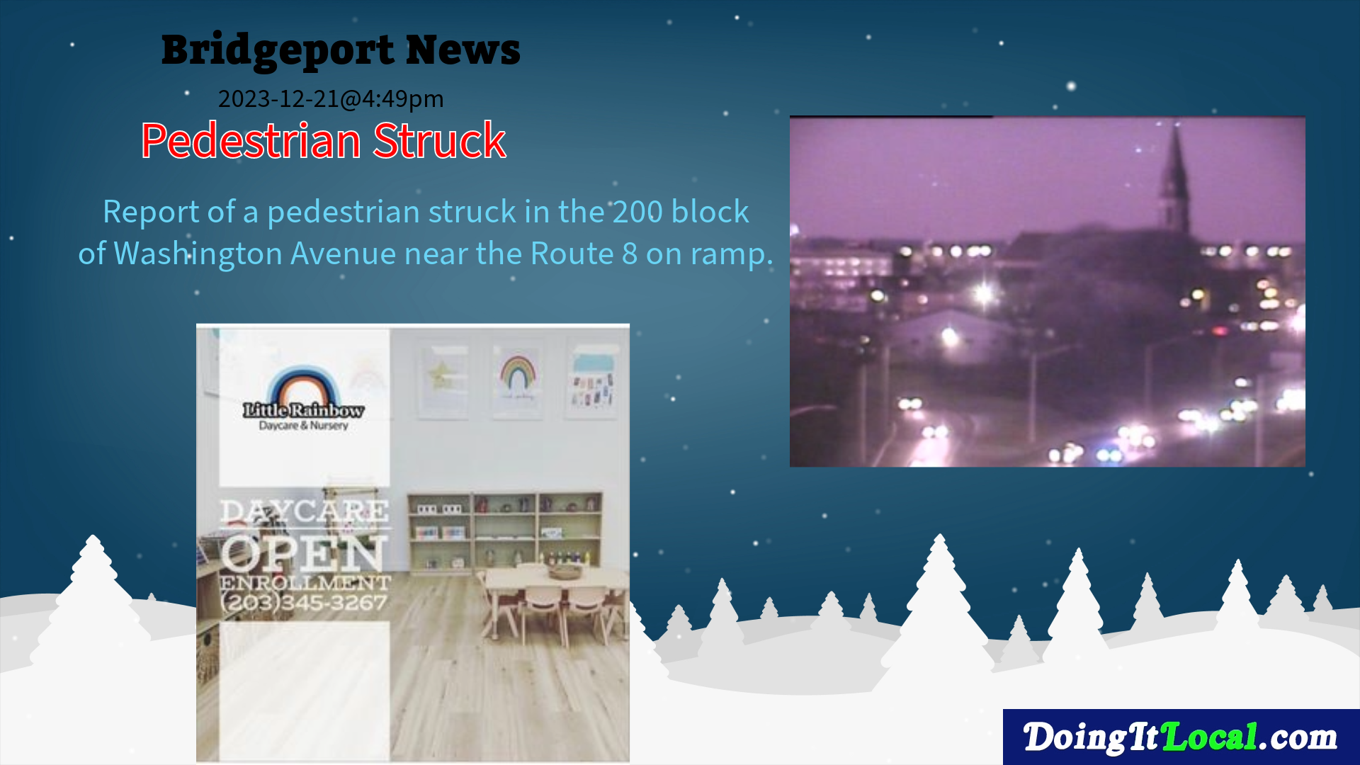 2023-12-12@4:49pm–#Bridgeport CT–Report of a pedestrian struck in the 200 block of Washington Avenue near the Route 8 on ramp.