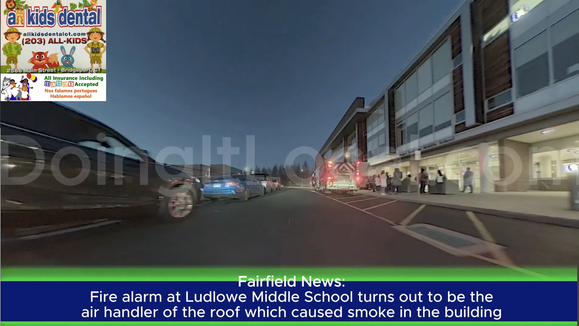 2024-01-11@5:10pm–Fairfield News: Fire alarm at Ludlowe Middle School turns out to be the air handler of the roof which caused smoke in the building.