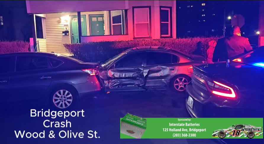2024-01-15@8:18pm–#Bridgeport CT– There were no reported injuries in this two-car crash at Wood and Olive Streets.