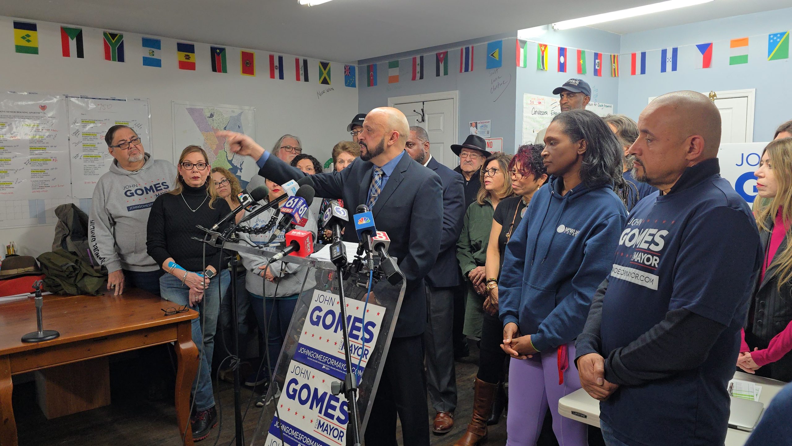 Today, candidate for mayor of Bridgeport John Gomes promised to push forward to a February vote. These are the soundbites from his speech today which he said: