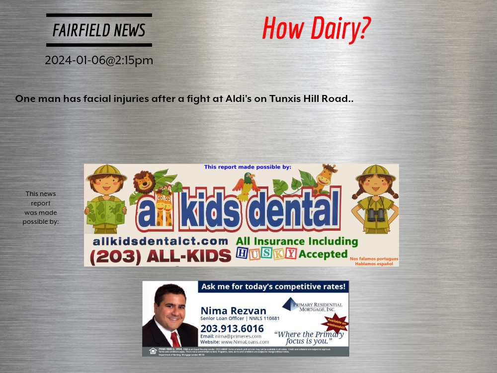2024-01-06@2:15pm–#Fairfield CT– One man has facial injuries after a fight at Aldi’s on Tunxis Hill Road..