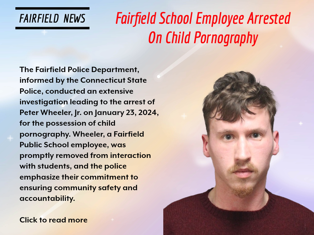 The investigation also revealed that Wheeler was an employee of the Fairfield Public School system. The Fairfield Public School administration was notified once this information was confirmed earlier this month. Wheeler was removed from having any further interactions with students and staff immediately and not permitted into any buildings.