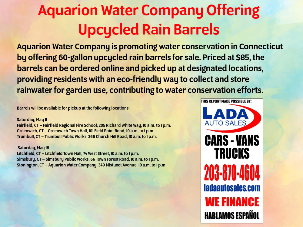 BRIDGEPORT, CONN. – March 11, 2024 – Aquarion Water Company announced today that it is offering upcycled rain barrels for sale as part of its ongoing water conservation efforts.