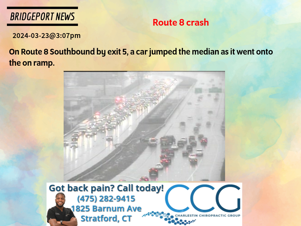 Bridgeport News: Route 8 Crash On Route 8 Southbound by exit 5, a car jumped the median as it went onto the on ramp.
