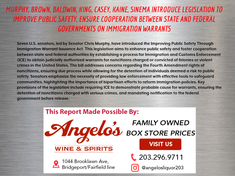 WASHINGTON–U.S. Senator Chris Murphy (D-Conn.), Chairman of the U.S. Senate Appropriations Subcommittee on Homeland Security, and U.S. Senators Sherrod Brown (D-Ohio), Tammy Baldwin (D-Wis.), Angus King (I-Maine), Bob Casey (D-Pa.), Tim Kaine (D-Va.) and Kyrsten Sinema (I-Ariz.) on Thursday introduced the Improving Public Safety Through Immigration Warrant Issuance Act, legislation to improve public safety and ensure strategic cooperation between state and federal governments by creating a mechanism that would allow Immigration and Customs Enforcement (ICE) to obtain a judicially authorized warrant for a noncitizen who has been charged or convicted of committing a felony or violent crime in the United States. Under the current system, when a noncitizen is charged by state or local law enforcement, ICE often issues an administrative request, known as a detainer, to hold the person in state custody until ICE arrives. However, because detainers are not authorized by a judge, state or local law enforcement cannot hold a person in physical custody longer than the period they would have been released or they risk violating that person’s Fourth Amendment rights.