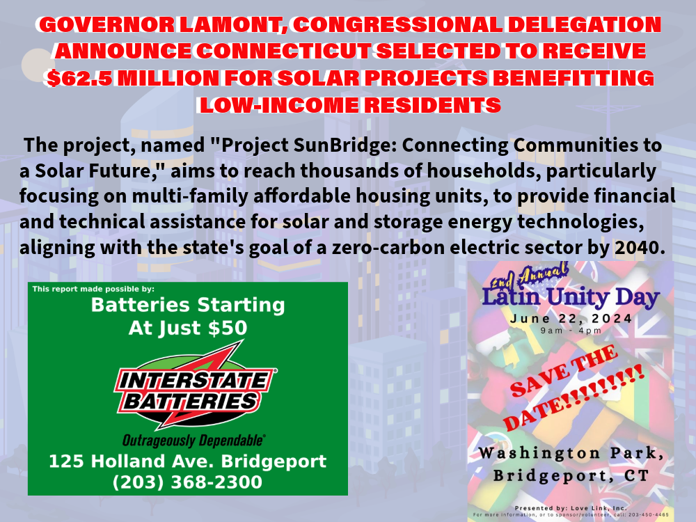 Congressman Jim Himes (CT-04) said, “Connecticut has long been on the cutting edge of innovation to curb the effects of climate change, and I’m thrilled to see this $62.5 million Solar for All grant for Project SunBridge help residents make the transition to clean energy. As the climate crisis continues to disproportionately affect low-income communities, this federal funding will expand access to solar energy for underserved neighborhoods along our coast – a crucial step toward reducing our carbon footprint.”