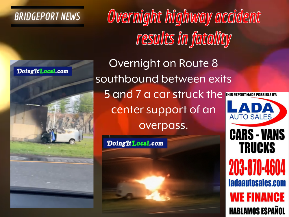 Overnight on Route 8 southbound between exits 5 and 7 a car struck the center support of an overpass.