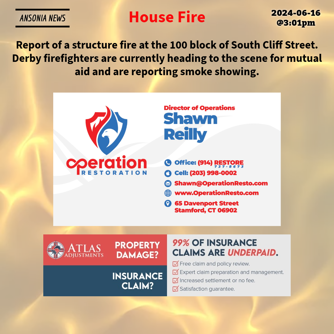 Derby firefighters are currently heading to the scene for mutual aid and are reporting smoke showing.