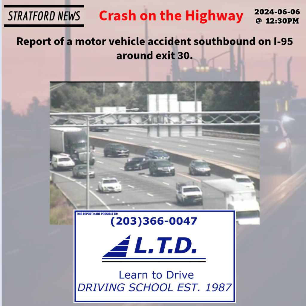 Stratford News: Crash on the Highway Report of a motor vehicle accident southbound on I-95 around exit 30.