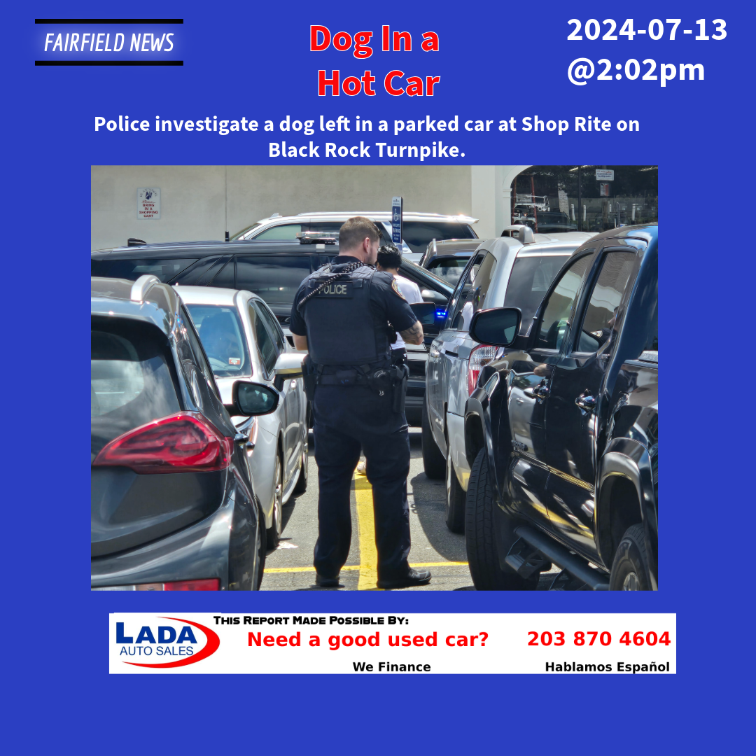 2024-07-13@2:02pm–#Fairfield CT– Police investigate a dog left in a parked car at Shop Rite on Black Rock Turnpike.