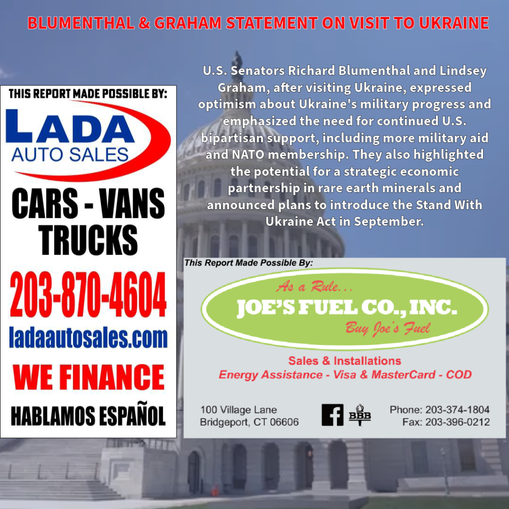 [Hartford, CT]– Today U.S. Senators Richard Blumenthal (D-Connecticut) and Lindsey Graham (R-South Carolina) issued a statement following their visit to Ukraine.