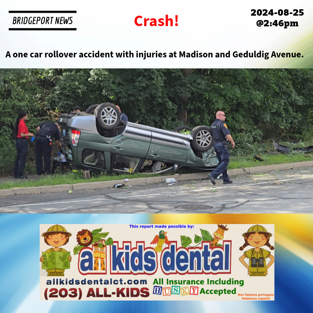 A one car rollover accident with injuries at Madison and Geduldig Avenue.